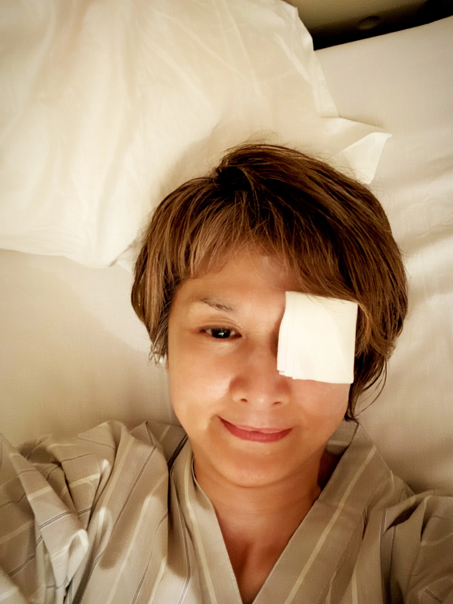 (あーあ😩私のまぶた、こんなに引き伸ばされちゃってさ〜この歳じゃ元に戻らないよ。ただでさえ年齢で瞼が下がってるのにさ〜💢